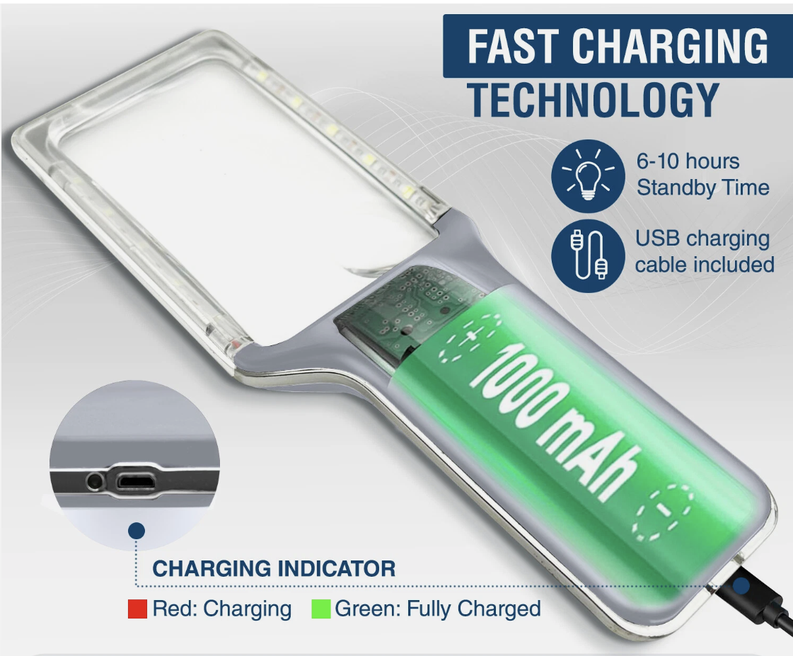 Regain clarity for fine print and intricate details with this rechargeable 6X LED magnifying glass. Designed with seniors and those with low vision in mind, its bright illumination and powerful magnification make reading and hobbies easier and more enjoyable.